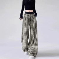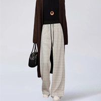 【復古格紋高腰褲】時尚百搭,高腰顯瘦,透氣不悶,垂順闊腿更顯高,不挑身材,打造屬於你的大長腿!