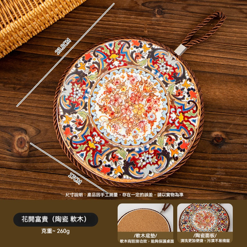 復古隔熱墊 防滑餐盤墊,陶瓷材質 結實耐用,復古花紋 高雅大氣,防水防油,好看又實用,鋪上它家裏瞬間就變得非常有檔次!!隔熱防燙耐高溫,萬物可墊,限時特惠