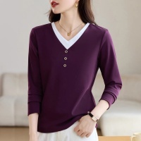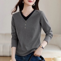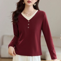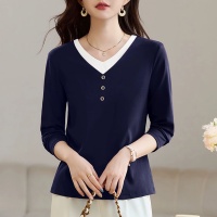 2025新款早秋 Ⅴ領拼接長袖恤 洋氣減齡 氣質顯瘦打底衫 面料柔軟舒適 純色百搭